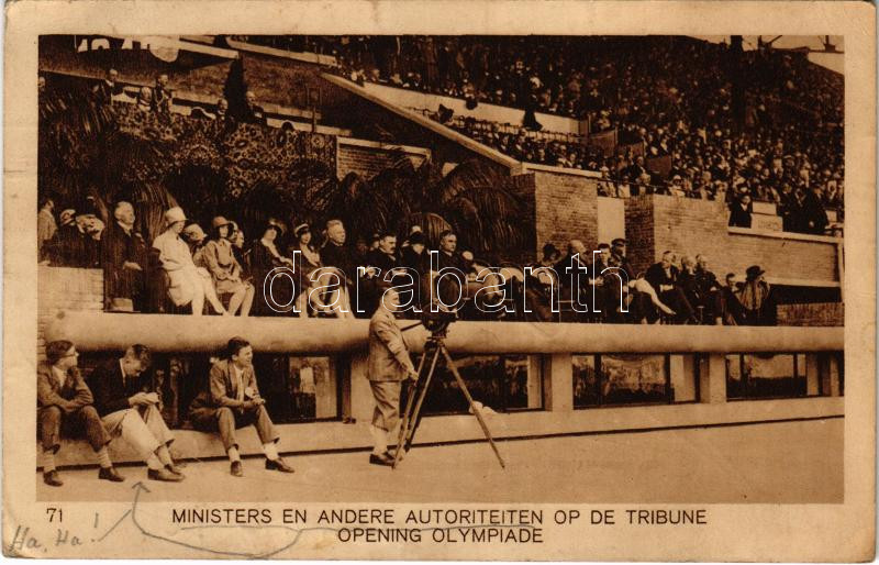 1928 Amsterdam - Ministers en andere autoriteiten op de tribune opening Olympiade / 1928 Summer Olympics in Amsterdam. Ministers and other authorities in the stands for the opening of the Olympics (gyűrődések / creases)
