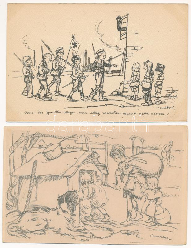 Francisque Poulbot - 40 db RÉGI francia képeslap vegyes minőségben, első világháborús propagandák is / 40 pre-1945 French postcards in mixed quality, including WWI military propaganda