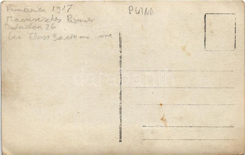 1917 Putna, WWI river Siret military pioneers. photo (EK) https://www.darabanth.com/de/514-Auktion-Philatelie-Postkarten-Numismatik-Kunstwerke-Bucher-Schreibwaren-Schmuck/515.0/Ansichtskarten/Rumanien~1141/1917-Putna-WWI-river-Siret-military-pioneers-photo-EK~II3463226