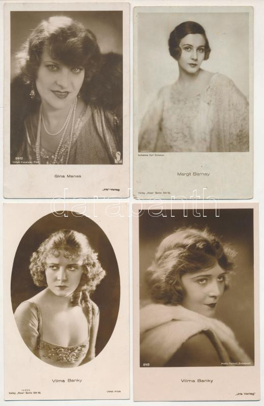 4 db RÉGI színésznő fotós képeslap: Gina Manes, Margit Barnay, Vilma B... https://www.darabanth.com/de/514-Auktion-Philatelie-Postkarten-Numismatik-Kunstwerke-Bucher-Schreibwaren-Schmuck/515.0/Ansichtskarten/Schauspieler-Schauspielerin~1188/4-db-REGI-szineszno-fotos-kepeslap-Gina-Manes-Margit-Barnay-Vilma-Banky~II3477982