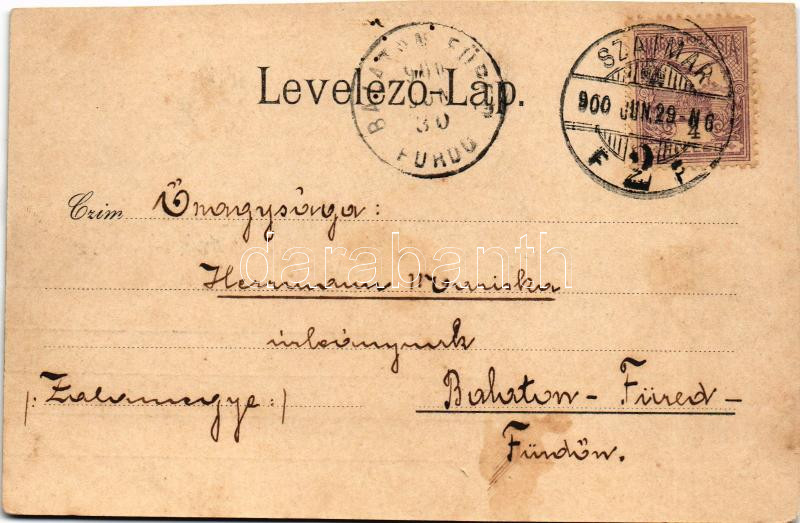1900 Szatmárnémeti, Szatmár, Satu Mare; Püspöki palota, Igazságügyi palota, Irgalmasok rendháza, zárda, székesegyház. Lővy M. kiadása / Bishop's palace, Palace of Justice, nunnery, cathedral. Art Nouveau, floral (vágott / cut)