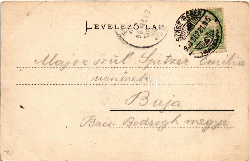 1903 Szászrégen, Sächsisch-Regen, Reghin; Hauptplatz mit Mittelgasse / Fő tér a Közép utcával, Wagner üzlete. Gust. Rösler kiadása, Heiter fényképész felvétele után / main square, street, shops (EB)