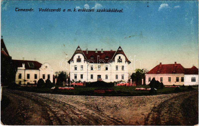 Beschreibung: Temesvár, Timisoara; Vadászerdő, M. kir. erdőőri szakiskola / forest ranger school, forestry school