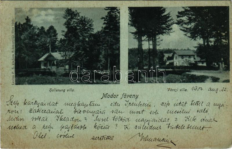 Beschreibung: 1903 Modor, Modra; Hollerung villa, város villa a fövenyen. Levius P. S. kiadása / villas (EB)