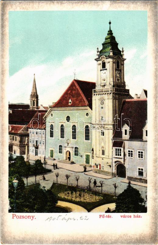 Beschreibung: 1905 Pozsony, Pressburg, Bratislava; Fő tér, Városháza / main square, town hall