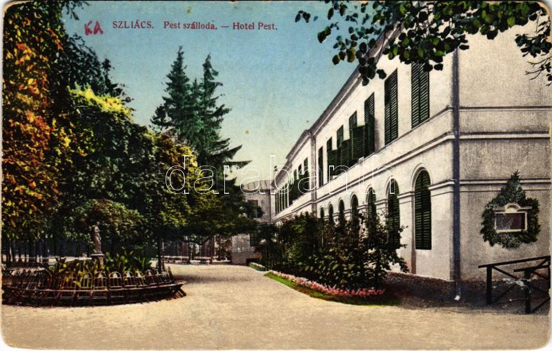 1915 Szliács, Sliac; Pest szálloda / spa hotel (kopott sarkak / worn c... https://www.darabanth.com/de/514-Auktion-Philatelie-Postkarten-Numismatik-Kunstwerke-Bucher-Schreibwaren-Schmuck/515.0/Ansichtskarten/Slowakei~1106/1915-Szliacs-Sliac-Pest-szalloda-spa-hotel-kopott-sarkak-worn-corners~II3478048