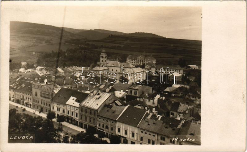 Beschreibung: Lőcse, Levoca; látkép a levegőből, zsinagóga, gyógyszertár, E. Singer üzlete / general view from the air, synagogue, pharmacy, shop. Kucek photo