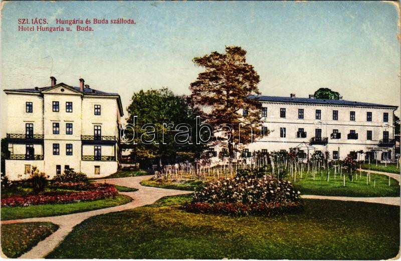 Szliács, Sliac; Hungária és Buda szálloda / hotels https://www.darabanth.com/de/514-Auktion-Philatelie-Postkarten-Numismatik-Kunstwerke-Bucher-Schreibwaren-Schmuck/515.0/Ansichtskarten/Slowakei~1106/Szliacs-Sliac-Hungaria-es-Buda-szalloda-hotels~II3151415