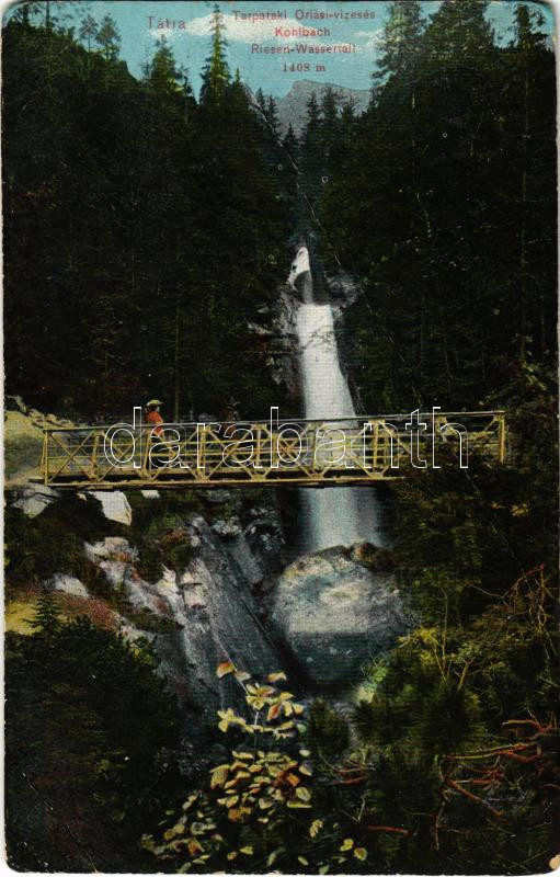 Beschreibung: Tátra, Magas-Tátra, Vysoké Tatry; Tarpataki óriási vízesés. Feitzinger Ede No. 1085. / Kohlbach Riesen Wasserfall / waterfall (fa)