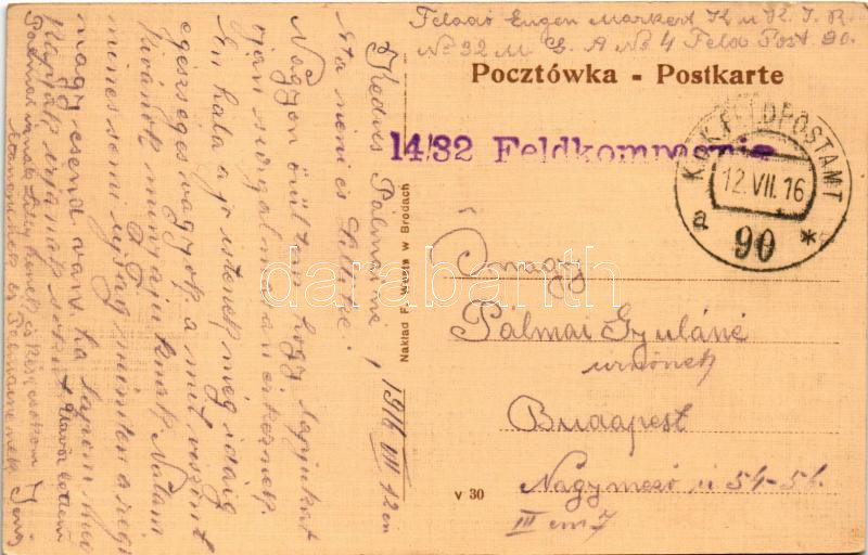 Beschreibung: 1916 Brody, Gimnazyum. F. West / Gymnasium / high school + 14/32 Feldkompagnie" "K.u.k. Feldpostamt 90"
