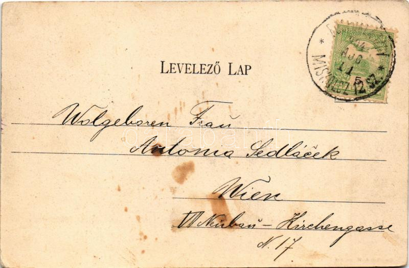 Beschreibung: 1904 Szerencs, látkép nyugatról. Heimlich A. W. kiadása. Art Nouveau + "PÜSPÖKLADÁNY - MISKOLCZ 12. SZ." vasúti mozgóposta bélyegző (fl)