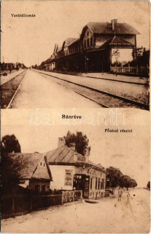 1921 Bánréve, vasútállomás, Fő utca, Reich E. üzlete. Vasúti levelezől... https://www.darabanth.com/de/514-Auktion-Philatelie-Postkarten-Numismatik-Kunstwerke-Bucher-Schreibwaren-Schmuck/515.0/Ansichtskarten/Ungarn~1104/1921-Banreve-vasutallomas-Fo-utca-Reich-E-uzlete-Vasuti-levelezolaparusitas-Rb~II3204786