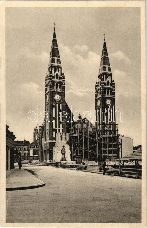 Szeged, Fogadalmi templom felállványozva, Magyarország egyetlen 20. században épült római katolikus székesegyháza, több évtizedig tartó tervezés és kivitelezés után épült meg. Juhász István kiadása