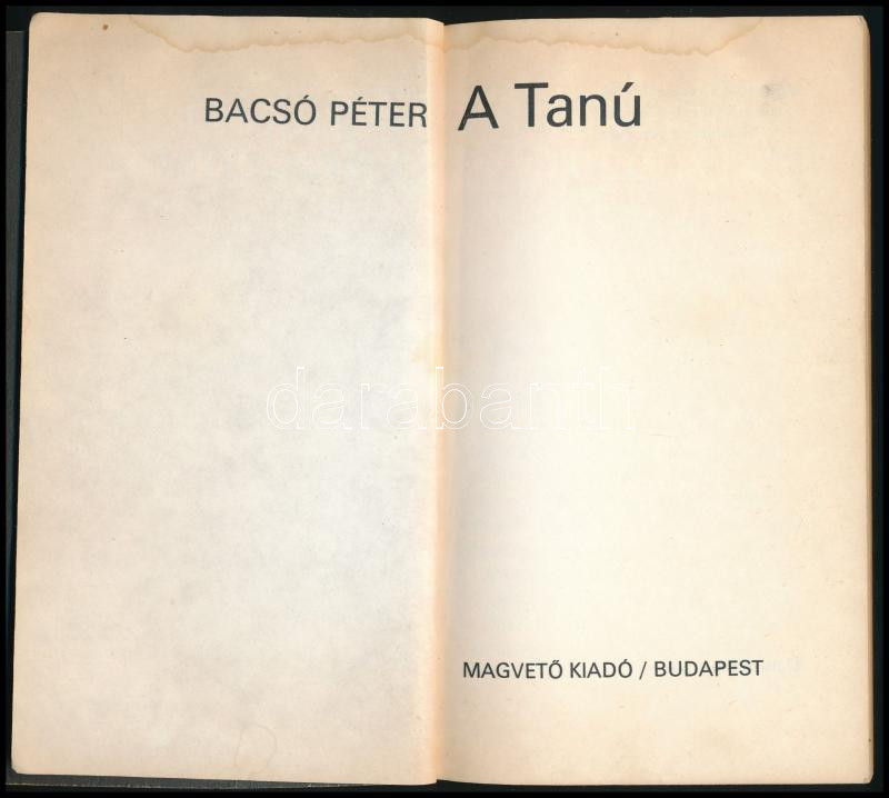 Bacsó Péter: A Tanú. Bp., 1980, Magvető. Első kiadás! Kiadói papírköté... https://www.darabanth.com/de/514-Auktion-Philatelie-Postkarten-Numismatik-Kunstwerke-Bucher-Schreibwaren-Schmuck/515.0/Bucher/Bucher-Andere-kuriositaten~633/Bacso-Peter-A-Tanu-Bp-1980-Magveto-Elso-kiadas-Kiadoi-papirkotes-lapok-kisse-folt~II3480447