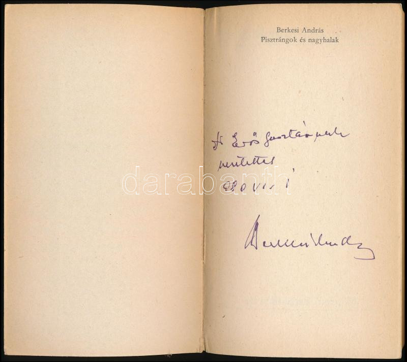 Berkesi András: Pisztrángok és nagyhalak. DEDIKÁLT! Bp., 1967, Magvető... https://www.darabanth.com/de/514-Auktion-Philatelie-Postkarten-Numismatik-Kunstwerke-Bucher-Schreibwaren-Schmuck/515.0/Bucher/Bucher-Andere-kuriositaten~633/Berkesi-Andras-Pisztrangok-es-nagyhalak-DEDIKALT-Bp-1967-Magveto-Kiadoi-papirkotes-~II3480473