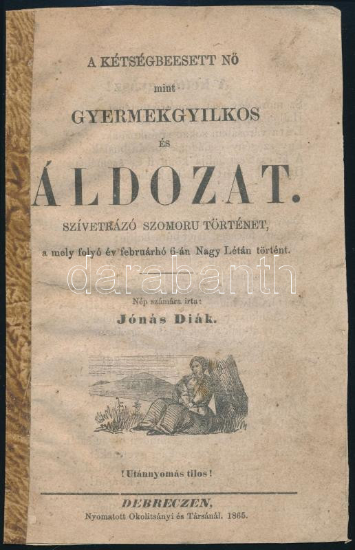 Jónás Diák: A kétségbeesett nő mint gyermekgyilkos áldozat. Debrecen, ... https://www.darabanth.com/de/514-Auktion-Philatelie-Postkarten-Numismatik-Kunstwerke-Bucher-Schreibwaren-Schmuck/515.0/Bucher/Bucher-Andere-kuriositaten~633/Jonas-Diak-A-ketsegbeesett-no-mint-gyermekgyilkos-aldozat-Debrecen-1865-Okolitsanyi-es-~II3480318
