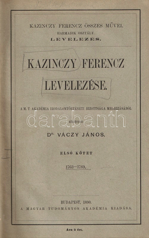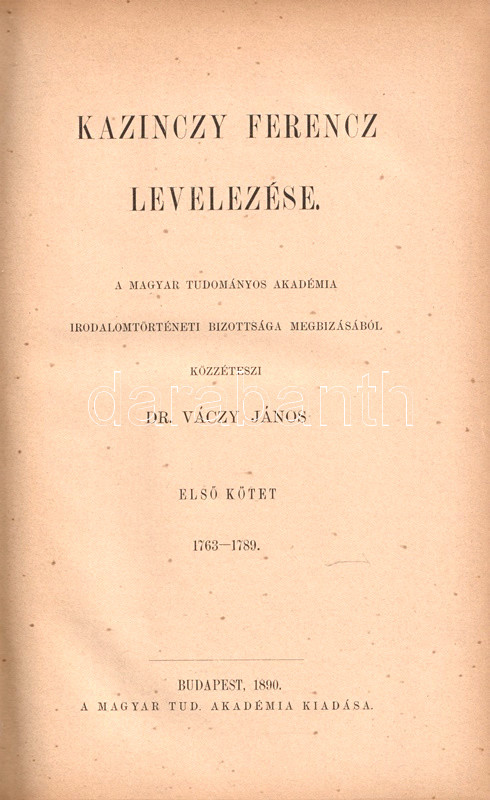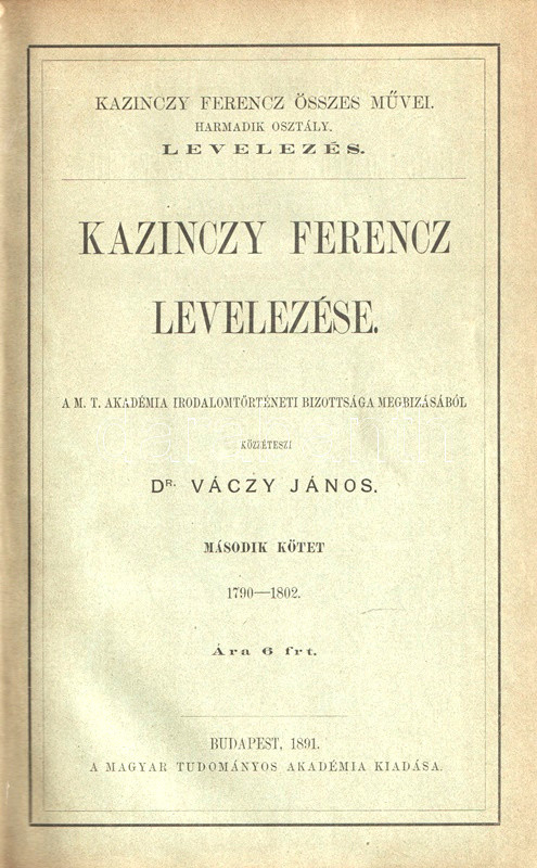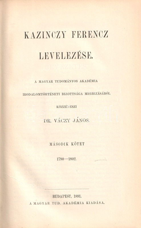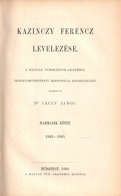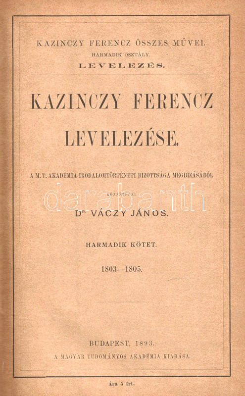 Kazinczy Ferencz levelezése. Közzéteszi Váczy János. I-III. kötet. [Három kötetben.]