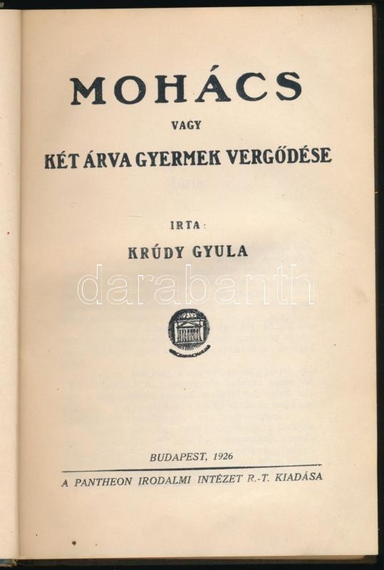 Krúdy Gyula: Mohács vagy két árva gyermek vergődése. Bp., 1926, Panthe... https://www.darabanth.com/de/514-Auktion-Philatelie-Postkarten-Numismatik-Kunstwerke-Bucher-Schreibwaren-Schmuck/515.0/Bucher/Bucher-Andere-kuriositaten~633/Krudy-Gyula-Mohacs-vagy-ket-arva-gyermek-vergodese-Bp-1926-Pantheon-Elso-kiadas-KiadC3~II3476156