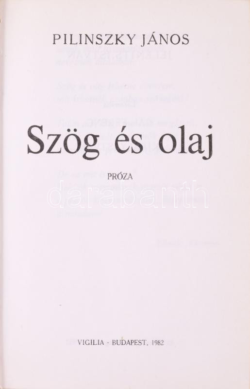 Pilinszky János: Szög és olaj. Próza. Bp., 1982, Vigilia, 513+(3) p. E... https://www.darabanth.com/de/514-Auktion-Philatelie-Postkarten-Numismatik-Kunstwerke-Bucher-Schreibwaren-Schmuck/515.0/Bucher/Bucher-Andere-kuriositaten~633/Pilinszky-Janos-Szog-es-olaj-Proza-Bp-1982-Vigilia-513plus3-p-Elso-kiadas-Kiadoi-kart~II3456409