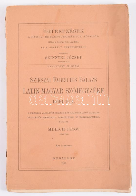 Bud... https://www.darabanth.com/de/514-Auktion-Philatelie-Postkarten-Numismatik-Kunstwerke-Bucher-Schreibwaren-Schmuck/515.0/Bucher/Bucher-Andere-kuriositaten~633/Szikszai-Fabricius-Balazs-latin-magyar-szojegyzeke-1590-bol----Budapest-1906-MTA-141-plus-6~II3482294