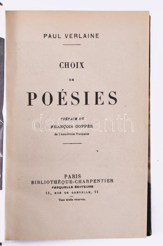 Verlaine, Paul: Choix de Poésies. Paris, Bibliothéque-Charpentier. Bor... https://www.darabanth.com/de/514-Auktion-Philatelie-Postkarten-Numismatik-Kunstwerke-Bucher-Schreibwaren-Schmuck/515.0/Bucher/Bucher-Andere-kuriositaten~633/Verlaine-Paul-Choix-de-Poesies-Paris-Bibliotheque-Charpentier-Bordazott-gerincu-felbor-kC3~II3460849