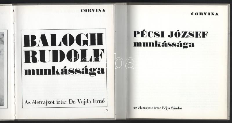 Fotóművészeti kiskönyvtár sorozat 2 kötete: Balogh Rudolf munkássága. Az életrajzot írta: Vajda Ernő. Bp., 1969, Corvina. Fekete-fehér fotókkal. Kiadói kartonált papírkötés. Megjelent 4100 példányban. + Pécsi József munkássága. Az életrajzot írta: Féjja Sándor. Bp., 1976, Corvina. Kiadói kartonált papírkötés.