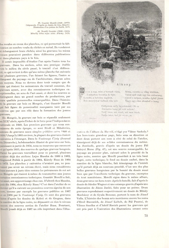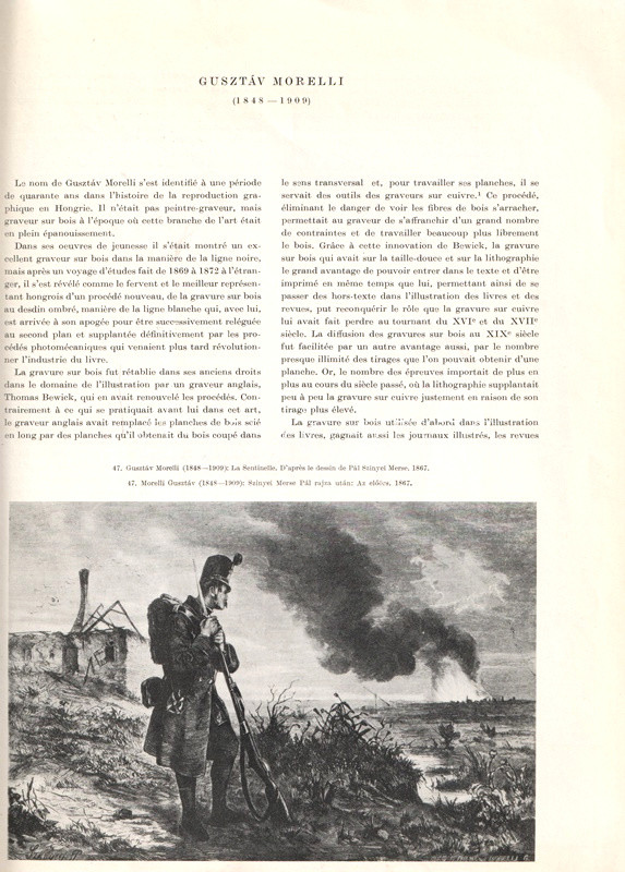 Morelli Gusztáv (1848-1909) fametsző, grafikus, a magyar folyóirat- és könyvillusztrálás fontos alakja. Angol mesterektől eltanult új fametszési technikája, mely a korábbiaknál érzékletesebb részleteket és jelentősebb sokszorosítási lehetőséget tett lehetővé, valósággal megújította a hazai illusztrációs eljárásokat. A Vasárnapi Újság grafikusaként elhíresült művész készítette az illusztrációkat többek között Orbán Balázs "A Székelyföld leírása" című illusztrált topográfiai művéhez is. Később értékpapírok, kötvények, tankönyvek részletgazdag illusztrációit is metszette.
