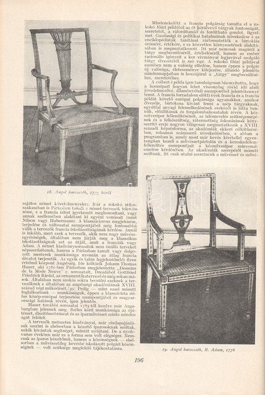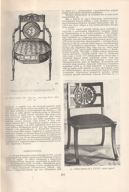 Szabolcsi Hedvig (1926-2021) művészettörténész, muzeológus, szerkesztő. Elsősorban a felvilágosodás korának európai és hazai bútorművészetével foglalkozott, a nagytétényi kastélymúzeum máig fennálló, gazdag bútorművészeti kiállítását ő rendezte. Szövegközti felvételekkel gazdagon illusztrált tanulmánya a klasszicizáló magyar bútorművészetet inspiráló európai bútorépítés XVIII. századi tendenciáit tekinti át, francia, angol és német példákkal. Az első borítófedélen hagyatéki bélyegzés, "Zádor Anna hagyatékából" felirattal.