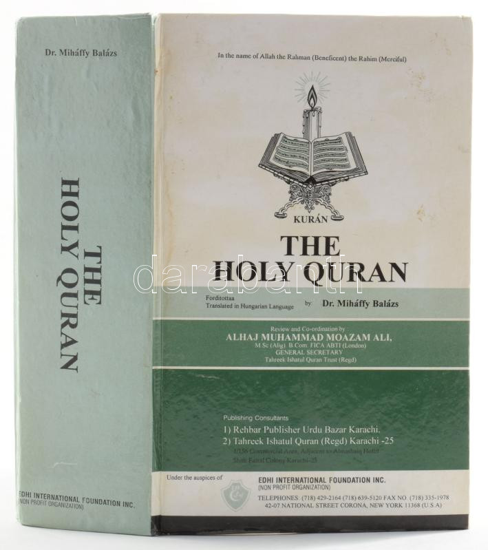 Kurán - The Holy Quran. A Szent Korán. ford: dr. Mihályffy Balázs. Arab és magyar nyelven. New York. é.n. EDHI International. Kiadói kartonált papírkötésben, kissé foltos borító