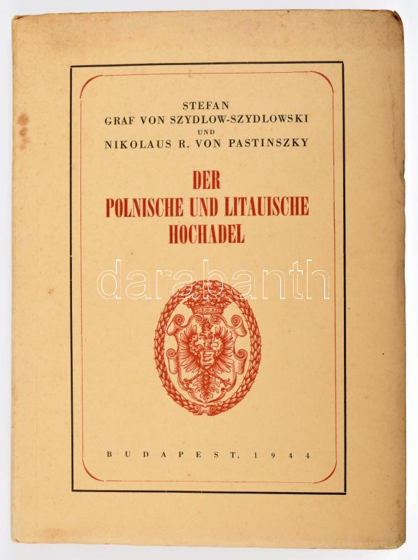 ( Heraldika Lengyel litván nemesség) Szydlow-Szydlowski, Stefan Graf von - Nikolaus R. von Pastinszky: Der Polnische und Litauische Hochadel Budapest., 1944, Officina 124 p., német nyelven, papír borítóban,