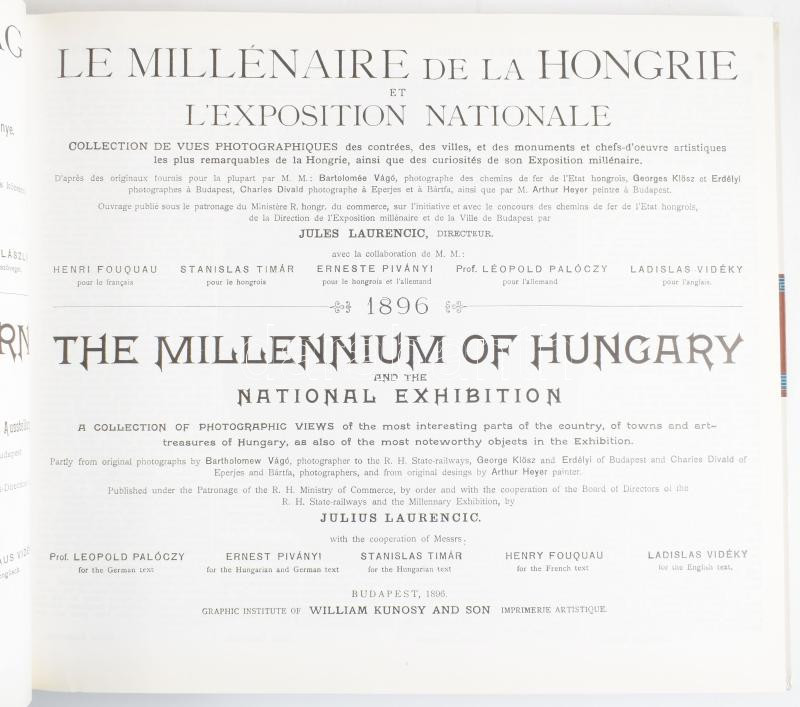 Az ezeréves Magyarország és a milléniumi kiállítás. Magyarország legszebb tájainak, városainak és műkincseinek valamint a kiállítás nevezetességeinek fényképgyűjteménye. [Bp., 1990], Téka. Reprint kiadás. Kiadói kartonált papírkötés. Megjelent 8000 példányban.
