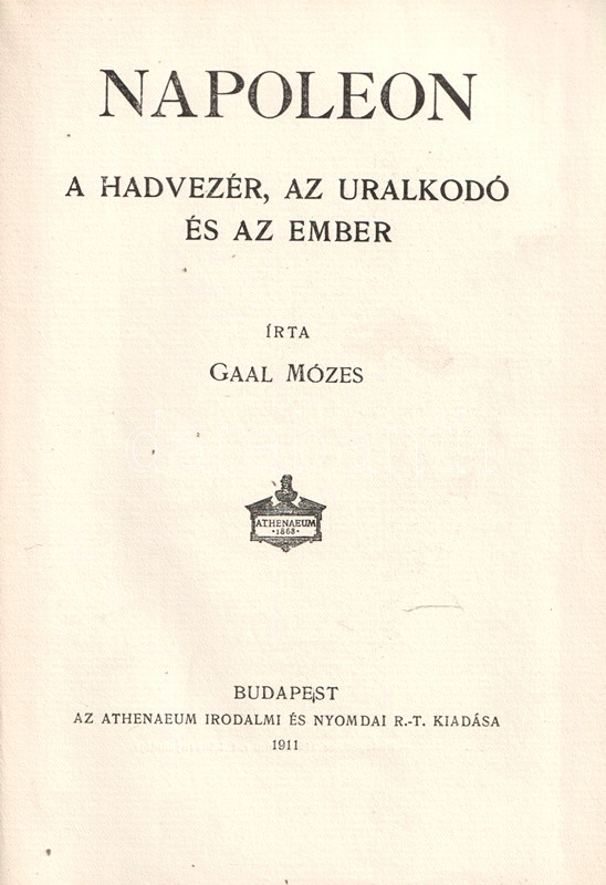 Gaal Mózes (1863-1936) pedagógus, tankerületi főigazgató, ifjúsági és ismeretterjesztő író. Napóleon-életrajza előbb a francia hadvezér és uralkodó pályaképét adja közre, majd jellemrajzát teszi közzé különféle megközelítésekben (a magánember, a politikai ellenfél, a mecénás).