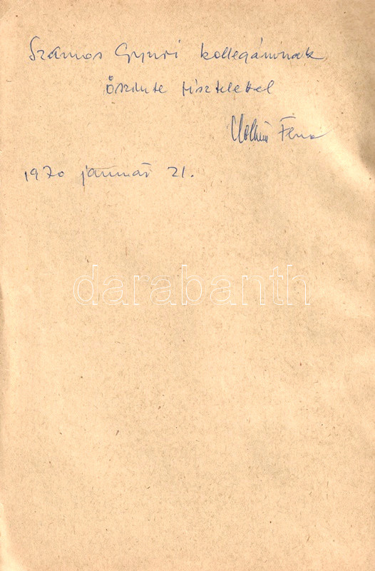 Dedikált: "Szamos Gyuri kollegámnak őszinte tisztelettel: Kollin Ferenc. 1970. január 21".