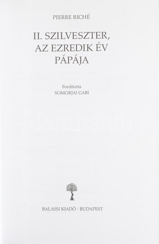 Pierre Riché: II. Szilveszter, az ezredik év pápája. Bp., 1999, Balass... https://www.darabanth.com/de/514-Auktion-Philatelie-Postkarten-Numismatik-Kunstwerke-Bucher-Schreibwaren-Schmuck/515.0/Bucher/Bucher-Geschichte~617/Pierre-Riche-II-Szilveszter-az-ezredik-ev-papaja-Bp-1999-Balassi-Kiadoi-papirkotes~II3463200