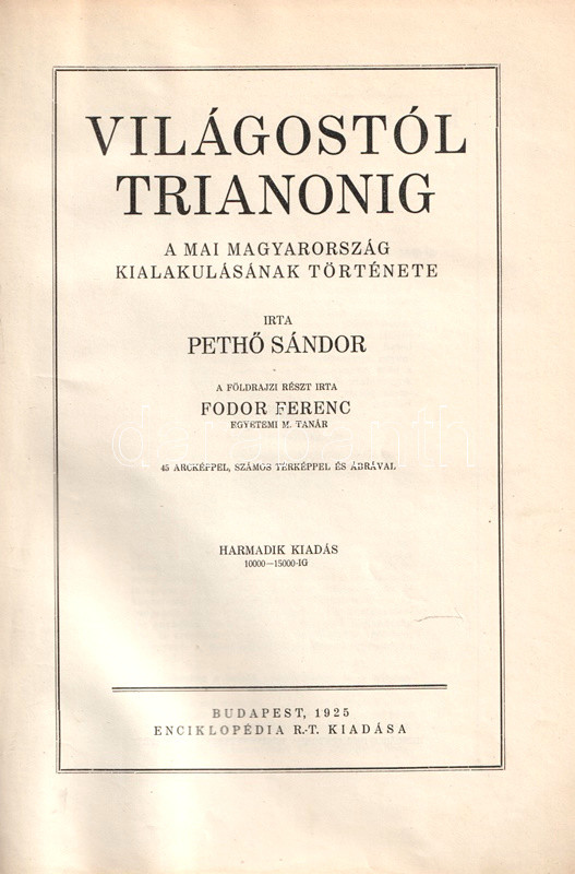 Világostól Trianonig. (+ Pethő Sándor: Világostól Trianonig védelme.) A mai Magyarország kialakulásának története. Írta Pethő Sándor. A földrajzi részt írta Fodor Ferenc. 45 arcképpel, számos térképpel és ábrával.