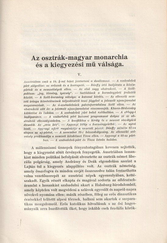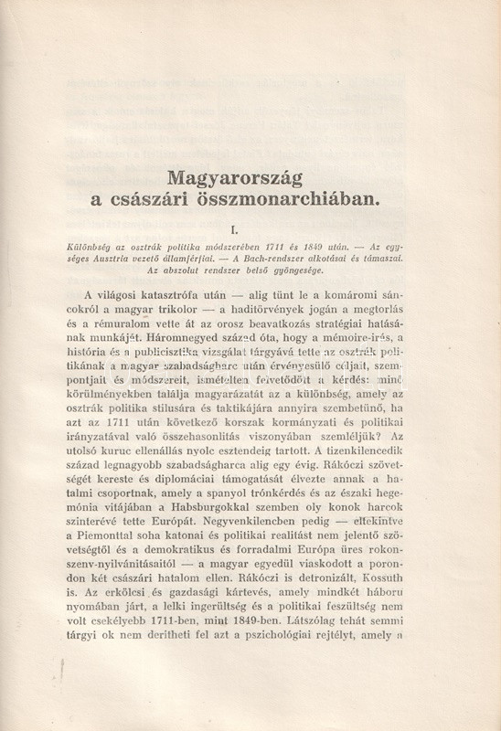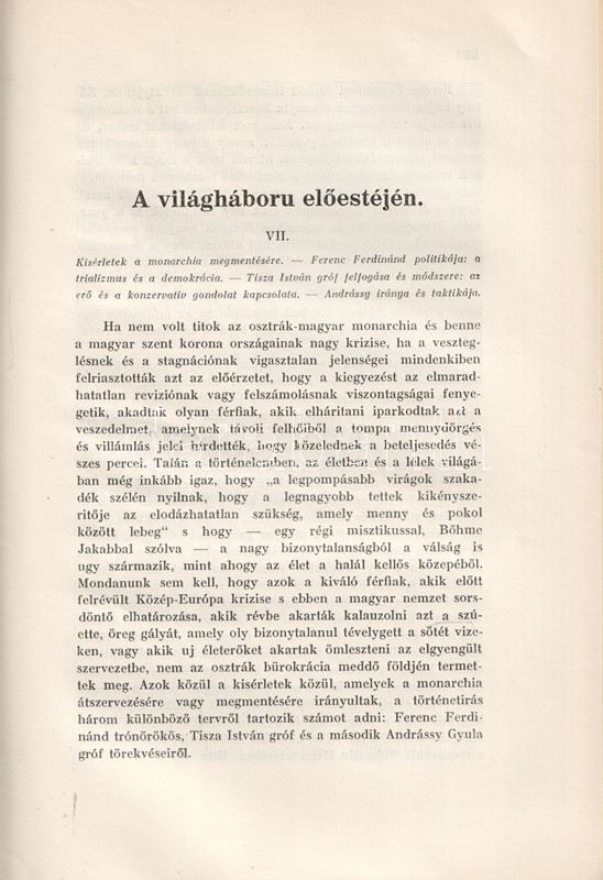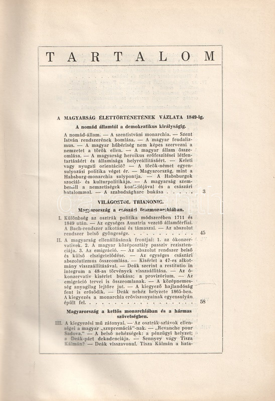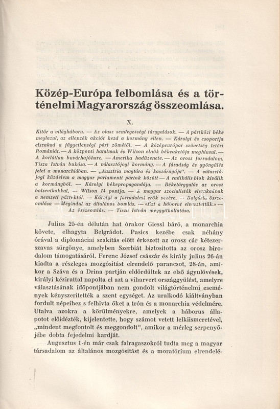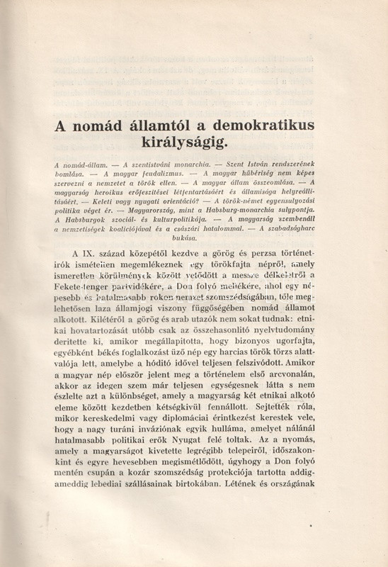 Pethő Sándor (1885-1940) történész, közíró, a Magyar Területvédő Liga egyik alapítója, a Magyar Nemzet alapító főszerkesztője. Egész oldalas térképvázlatokkal és szövegközti politikusportrékkal gazdagon illusztrált korszakmonográfiájában tárgyilagosan, ám szigorúan von mérleget a dualista korszak politikájáról. Bírálatának középpontjában Tisza Kálmán szabadelvű társadalom- és gazdaságpolitikája áll, mely a magyar külön fejlődés lehetőségeit önös érdekekből nem ragadta meg. A munka a századforduló és a tízes évek belpolitikai konfliktusairól is emlékezetes képet alkot, az összeomlás során felálló Károlyi-kormányzatról, illetve a Tanácsköztársaság produkciójáról pedig éles kritikát fogalmaz meg. A munka ezért felkerült az Ideiglenes Nemzeti Kormány által 1945-ben betiltott művek jegyzékére. Példányunk a mű harmadik kiadásából származik.