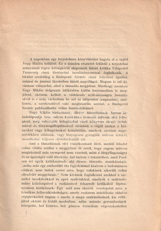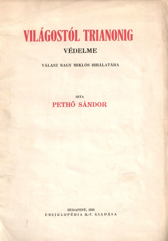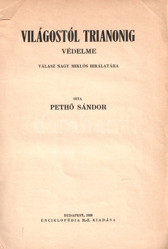 Pethő Sándor: Világostól Trianonig védelme. Válasz Nagy Miklós bírálatára.