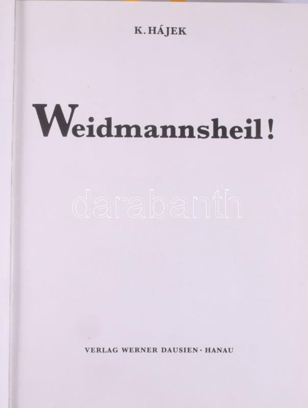 Beschreibung: K. Hájek: Weidmannsheil! Hanau,én,Werner Dausien. Német nyelven. Gazdag képanyaggal illusztrált. Kiadói egészvászon-kötés, szakadt kiadói papír védőborítóban.