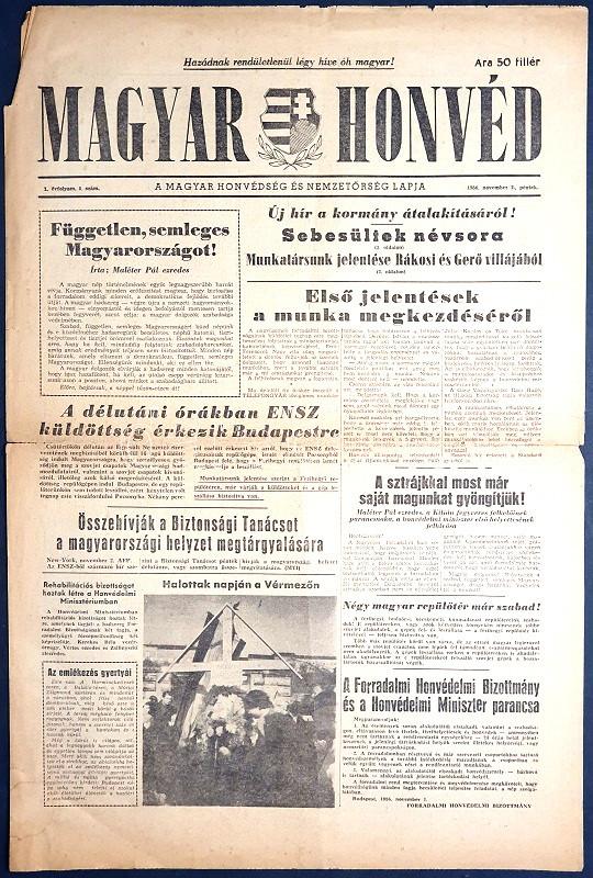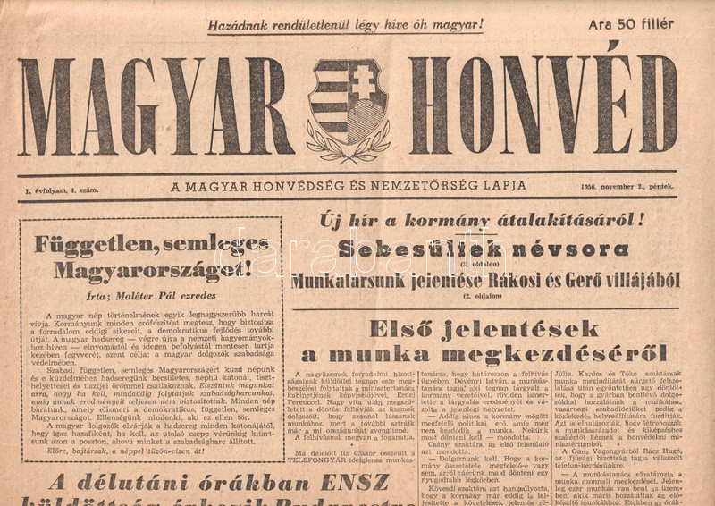 A Nagy Imre-kormányt támogató honvédségi lap a forradalom politikai és honvédelmi híreit közli.