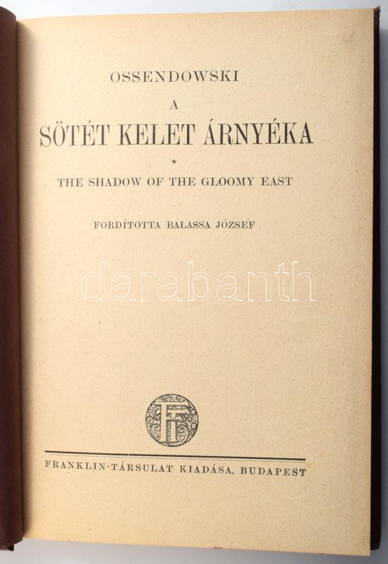 3 db - Ossendowski: A sötét kelet árnyéka. Bp., Franklin. + Ossendowsk... https://www.darabanth.com/de/514-Auktion-Philatelie-Postkarten-Numismatik-Kunstwerke-Bucher-Schreibwaren-Schmuck/515.0/Bucher/Bucher-Reise-und-Ortgeschichte~614/3-db-Ossendowski-A-sotet-kelet-arnyeka-Bp-Franklin-plus-Ossendowski-Azsiai-titkok-azsiai~II3476412