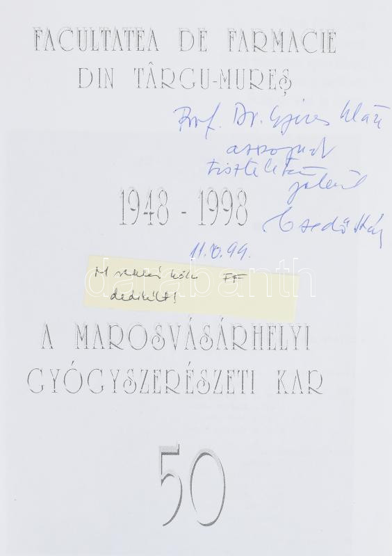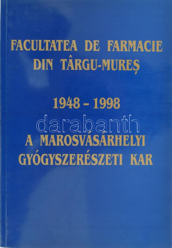A Marosvásárhelyi Gyógyszerészeti kar 1948-1998. szerk pror Gyéresi Árpád. DEDIKÁLT., Kétnyelvű román-magyar. Kiadói papírkötésben 326p.