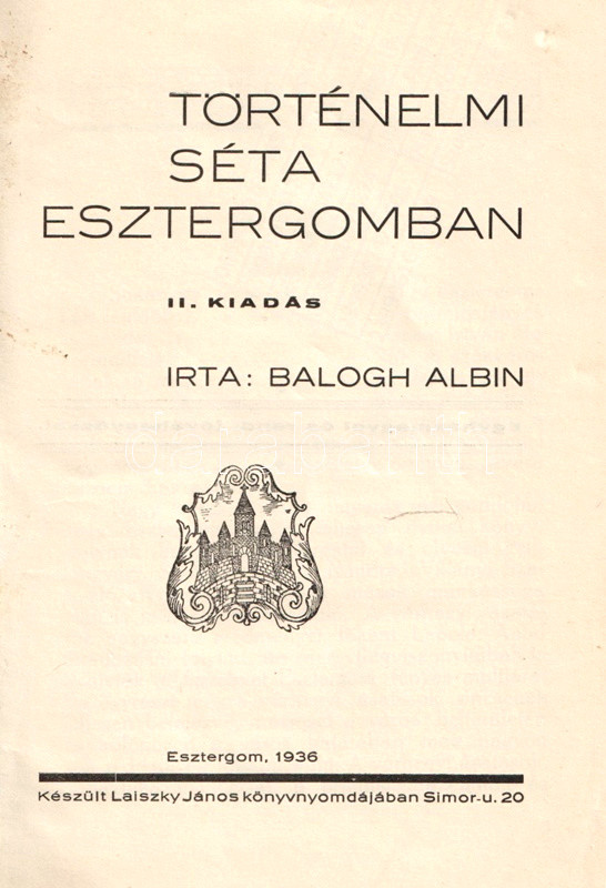 Esztergom, 1936. Laiszky János ny. 55 + [1] p.