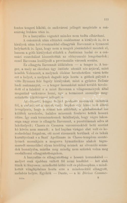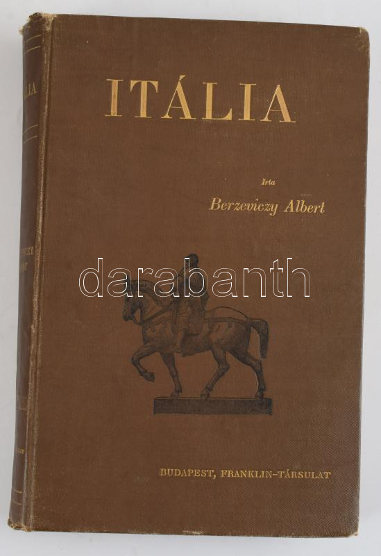 Berzeviczy Albert: Itália. Úti rajzok és tanulmányok. Bp., 1899, Franklin. Kiadói kopott egészvászon kötés, előzéklap kitépve, ex libris tépett, lapszélek részben foltosak, kopottas állapotban.