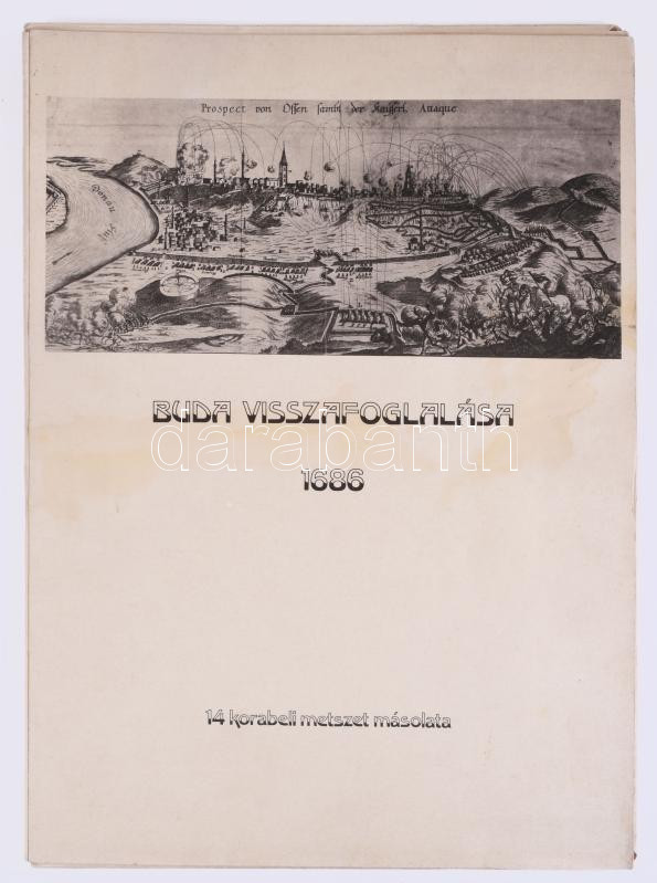 Buda visszafoglalása 1686. A Budapest Gyűjtemény 14 korabeli metszetének másolata. Bp., 1986, Fővárosi Szabó Ervin Könyvtár, 8 sztl. lev.+ 14 (reprodukciók) t. Kiadói papírborítóban, 43x31 cm. Megjelent 1000 példányban.