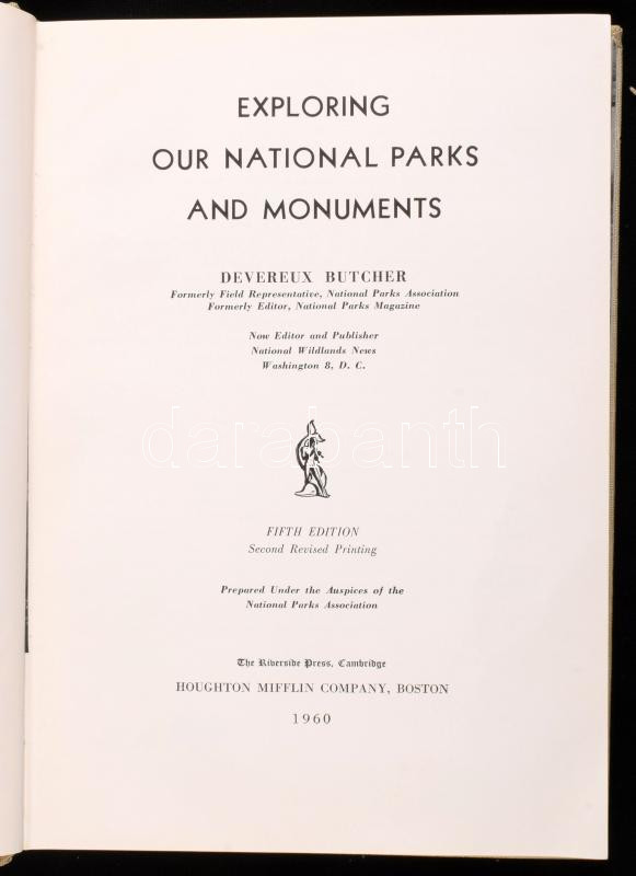 Butcher, Devereux: Exploring our National Parks and Monuments. Boston, 1960, Houghton Miffin Company. Kiadói egészvászon kötés, jó állapotban / linen binding, good condition.