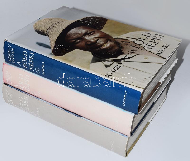Kiszely István: A Föld népei. 1-3. köt. 1.: Európa népei. 2.: Ázsia népei. 3.: Afrika népei. Bp., 1979-1986, Gondolat. Fekete-fehér és színes képekkel illusztrálva. Kiadói egészvászon-kötés, kiadói papír védőborítóban, az egyik kötet szakadt védőborítóval.