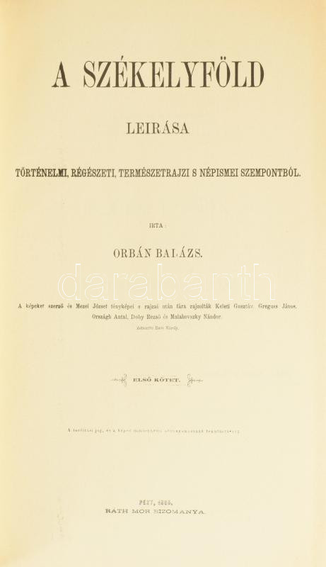 Orbán Balázs: A Székelyföld leírása. I-II. köt. (Reprint kiadás, kísérőfüzettel). Bp., 1982, Helikon - Magyar Könyvkiadók és Könyvterjesztők Egyesülése. Kiadói egészvászon-kötések, kopott kiadói papírtokban. + Orbán Balázs: Torda város és környéke. Bp., 1984, Helikon, 479+(1) p. Reprint kiadás, kísérőtanulmánnyal (Csatári Dániel: Orbán Balázs eszméi). Kiadói egészvászon-kötés, kiadói papír védőborítóban, foltos, szakadt papírborítóban.