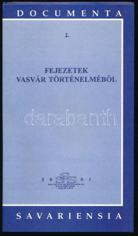 Pusztay János (szerk.): Fejezetek vasvár történelméből. Documenta Savariensia 2. Szombathely, Savaria University Press. Kiadói papírkötés, jó állapotban.