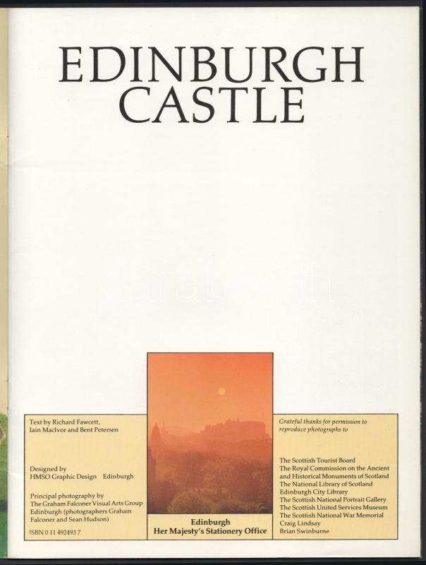 Richard Fawcett - Iain McIvor - Bent Petersen: Edinburgh Castle. Offical guide. Edinburgh,1986, Her Majesty's Stationery Office. Angol nyelven. Gazdag képanyaggal illusztrált. Kiadói papírkötés.