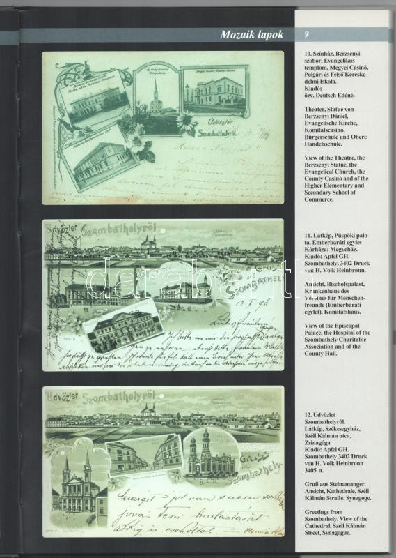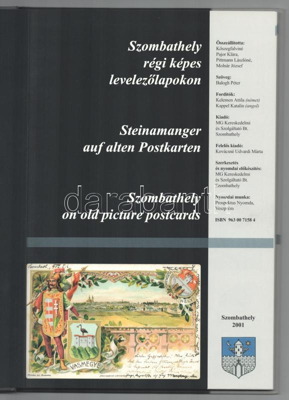 Szombathely régi képes levelezőlapokon. / Steinamanger auf alten Postkarten. / Szombathely on old picture postcards. Szombathely, 2001, MG Kereskedelmi és Szolgáltató Bt., 104 p. Gazdag képanyaggal illusztrálva. Magyar, német és angol nyelven. Kiadói kartonált papírkötés.